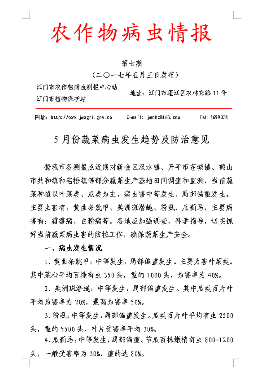 2017年江门市农作物病虫情报 第七期(5月份蔬菜病虫发生趋势及防治意见)_工作简报_江门市农业农村局