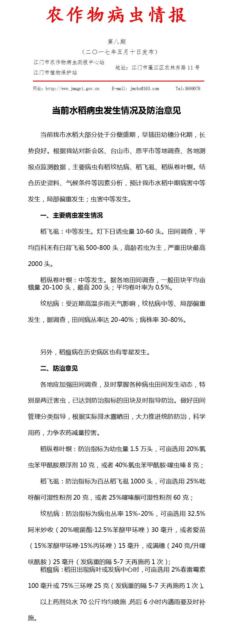 2017年江门市农作物病虫情报 第八期(当前水稻病虫发生情况及防治意见)_工作简报_江门市农业农村局