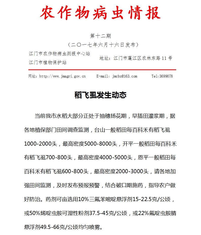 2017年江门市农作物病虫情报 第十二期(稻飞虱发生动态)_工作简报_江门市农业农村局
