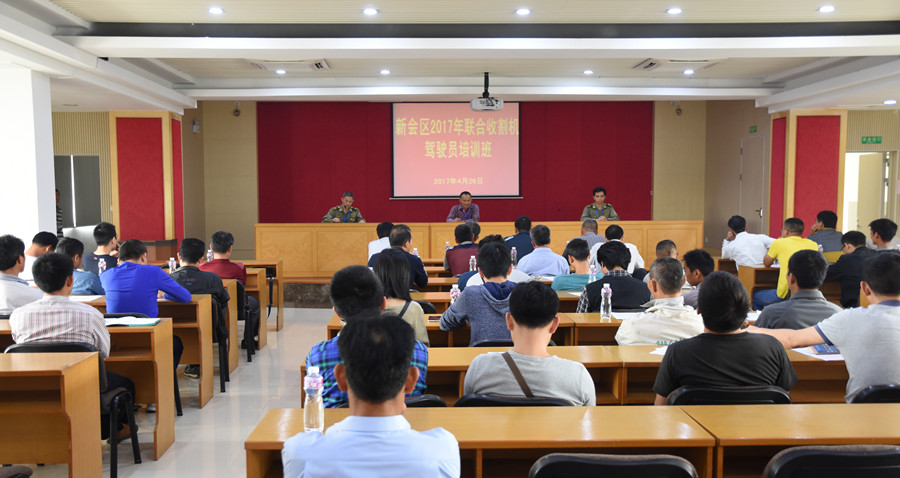 为加快建设全国“平安农机”示范区,提高联合收割机驾驶员持证率,提高本区农机管理人员及农机手对机械操作的熟练程度,减少农机事故发生。江门市新会区农林局于4月26日,特邀江门市农业技术服务中心到新会区举行联合收割机驾驶员培训班,并在6月份分别在三江镇、崖门镇和司前镇分三个片区举行了三期联合收割机驾驶员实操培训及考试。