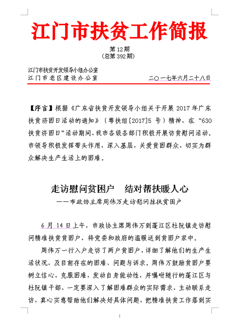 走访慰问贫困户 结对帮扶暖人心_工作简报_江门市农业农村局