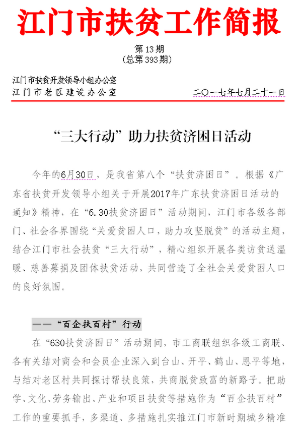 江门市2017年扶贫简报第13期(总393期)_工作简报_江门市农业农村局