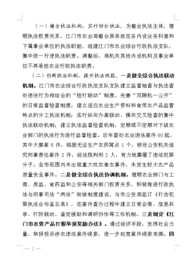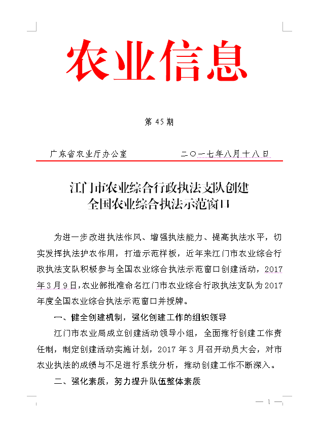 农业信息第45期 江门市农业综合行政执法支队创建全国农业综合执法示范窗口_工作简报_江门市农业农村局