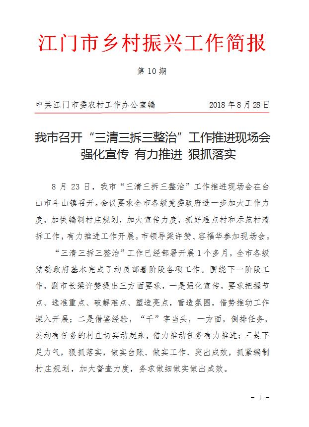 江门市乡村振兴工作简报 第10期_工作简报_江门市农业农村局