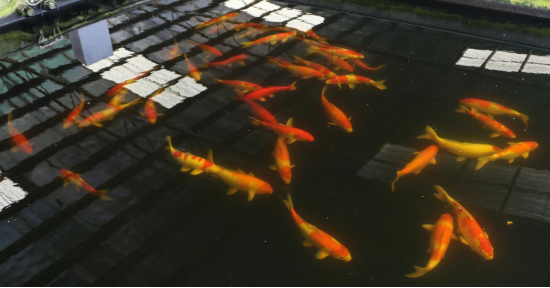 3.锦鲤类型三:优选自产锦鲤,平均体重约2公斤,体长45cm,约250尾(锦鲤在5号池塘饲养,投喂可观察)。