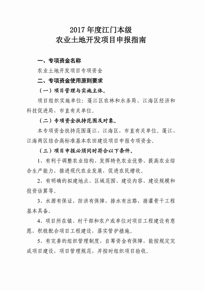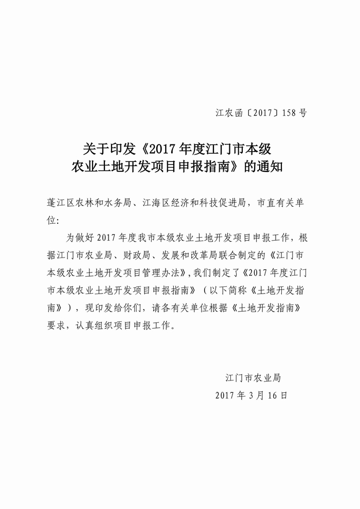 关于印发《2017年度江门市本级农业土地开发项目申报指南》的通知_项目申报_江门市农业农村局