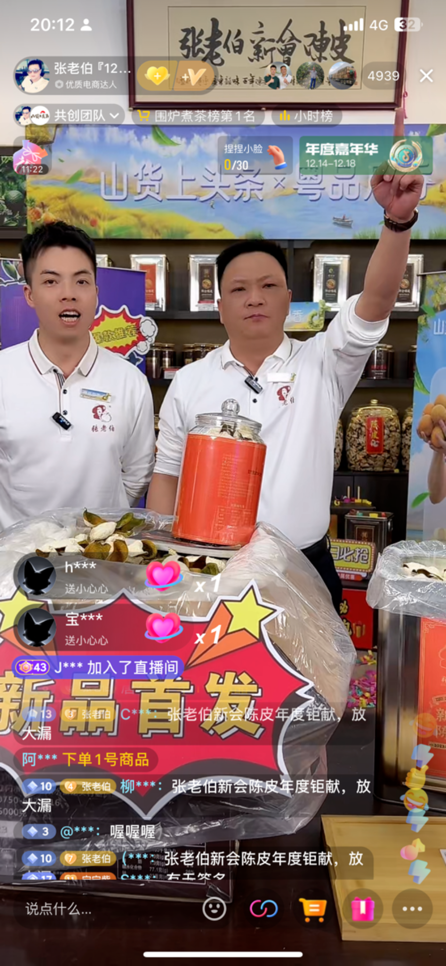 12月16日晚,抖音“山货上头条粤品月香”新会陈皮产业扶持专场由抖音官方账号@山货上头条和@张老伯共创,在广东省农业农村厅指导,广东省农业对外经济与农民合作促进中心、江门市农业农村局、新会区农业农村局支持下正式启动,通过抖音平台助力新会陈皮、新会柑普茶特产走向全国。