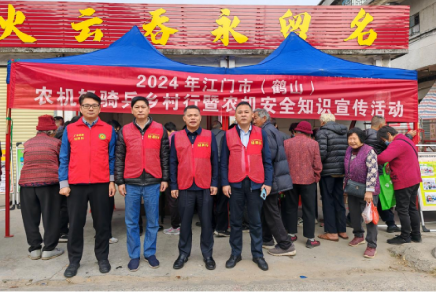 1月4日,江门市农业技术服务中心联合鹤山市农业技术推广中心组织农机“轻骑兵”到鹤山市鹤城镇南中村举办2024年江门市(鹤山)农机“轻骑兵”乡村行暨农机安全知识宣传活动,为解决农民生产一线问题开展农机技术指导服务,广泛宣传农机安全生产知识,确保农业机械化生产安全、有序开展。江门市农业农村局农机化科科长、四级调研员肖军,江门市农业技术服务中心、鹤山市农业农村局、鹤山市农业技术推广中心等负责同志参加本次农机技术服务活动。