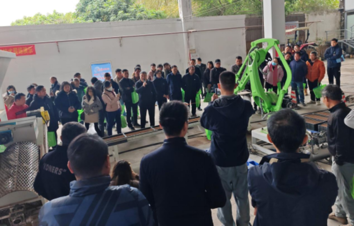 培训班围绕我市水稻育秧机械化技术应用短板,通过理论培训与实操演示相结合的方式给参训农机手开展智能机械化育秧技术培训,详细讲解了智能机械化育秧技术原理、技术要点以及应用的优势。本次演示的智能机械化育秧生产线设备,能实现撒底土、播种、浇水、覆土、自动叠盘等整个育秧过程机械化,同时,该套设备配套了智能机械化手臂,能自动感应秧盘并把它夹起,很整齐地码到秧架盘上面。据了解,该套设备在江门首次投入使用,领先全省其他地区,每小时能制作秧盘1000盘以上,每天产量相当于500亩水田的用秧量。增加的智能机械手臂,能节省3到5个人的劳动,工作效率大幅提高。参训农机手纷纷表示大开眼界,对智能机械化育秧设备产生极大的兴趣,有个别农机手现场就与设备厂家进行了对接。