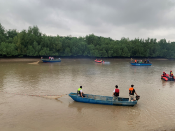 接转报后,省、市、区三级农业农村部门高度重视中华白海豚救援工作,迅速组织有关业务科(股)室负责人、专家及广东江门中华白海豚省级自然保护区管理处工作人员赶赴现场开展救援工作。经现场勘察和了解周边环境后,现场指挥组形成救援方案,由新会区农业农村局、江门市海洋综合执法支队新会大队及崖门镇政府分别协调召集救援人员约50人、救援船艇7艘,迅速到达中华白海豚所在水域开展救援工作。经连续工作,于当日18时20分左右成功将中华白海豚引导回归大海,有效保护了珍稀海洋动物。