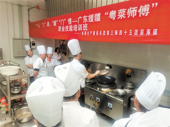 除了参展,江门市技师学院派出师资联合兵团第三师四十五团,在6月7日—16日在四十五团开展送教上门式“粤菜师傅”职业技能培训,努力培养一批知识型、技术型、创新型高素质人才。为了持续提高团场劳动者的职业技能和综合素质,四十五团还聘请了江门市技师学院党委书记王戟和教务部部长焦慧慧为教育和职业技能培训特聘和指导专家。
