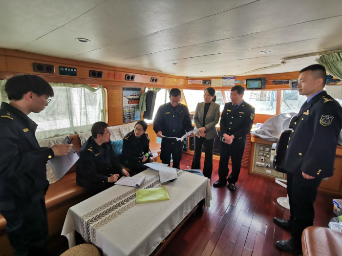 2月28日下午,市海洋综合执法支队支队长汪炳康带队在西江水域开展禁渔期前执法巡查,行动中共检查涉渔船舶1艘,并向从业人员派发禁渔宣传单张。