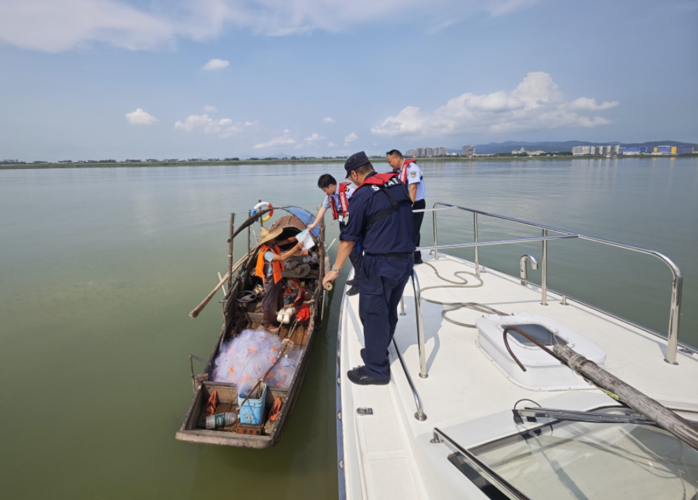 8月27日,市海洋综合执法支队联合市公安局、市国防动员办公室、江门海关、江门海事局等多部门在西江水域开展执法巡航检查行动,重点打击涉渔“三无”船舶、临水作业不穿着救生衣等违法违规行为。