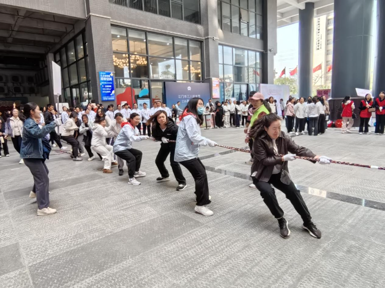 3月6日上午,组队参加市妇联举办的巾帼拔河比赛,比赛中,队员们斗志昂扬、默契配合,在第一局突围而出。