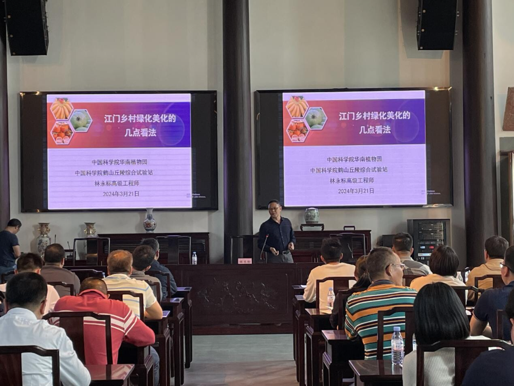 为深入贯彻习近平生态文明思想,全面推进绿美江门生态建设,做深做实“百千万工程”,3月21日,市委组织部、市农业农村局联合举办江门市2024年乡村绿化美化工作专题培训班(第1期),本次培训以“现场教学+理论授课”的形式开展,对蓬江区、江海区、鹤山市的镇(街)分管领导、省“百千万工程”首批典型村党组织书记、市“百千万工程”典型选树培育村(社区)党组织书记等近130人进行集中培训。