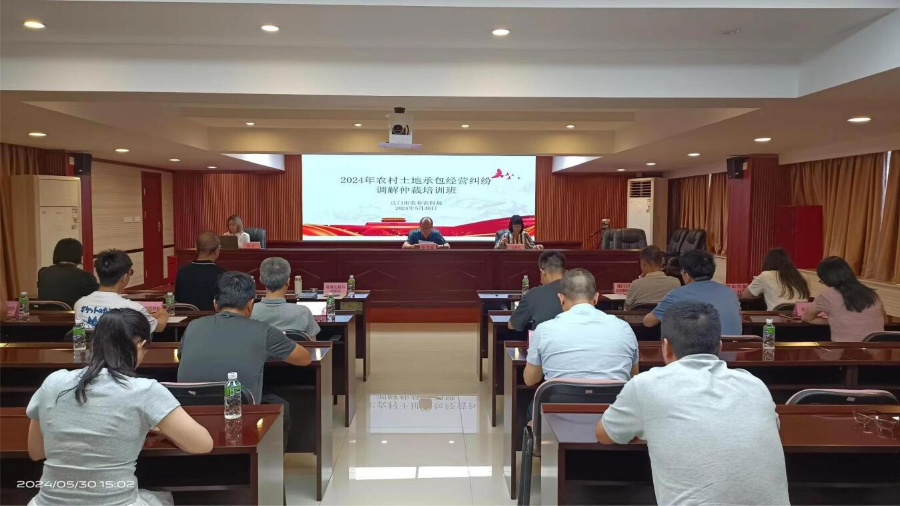为进一步提高农村土地承包经营纠纷调解仲裁业务能力,依法保护农民土地承包经营权,稳定农村土地承包关系,5月30日,我局举办2024年农村土地承包经营纠纷调解仲裁培训班,市、县两级农业农村部门相关负责同志,全市县级仲裁员、镇级调解员及村级调解员代表约共200人参加,市农业农村局四级调研员陈常岷出席并作开班动员。