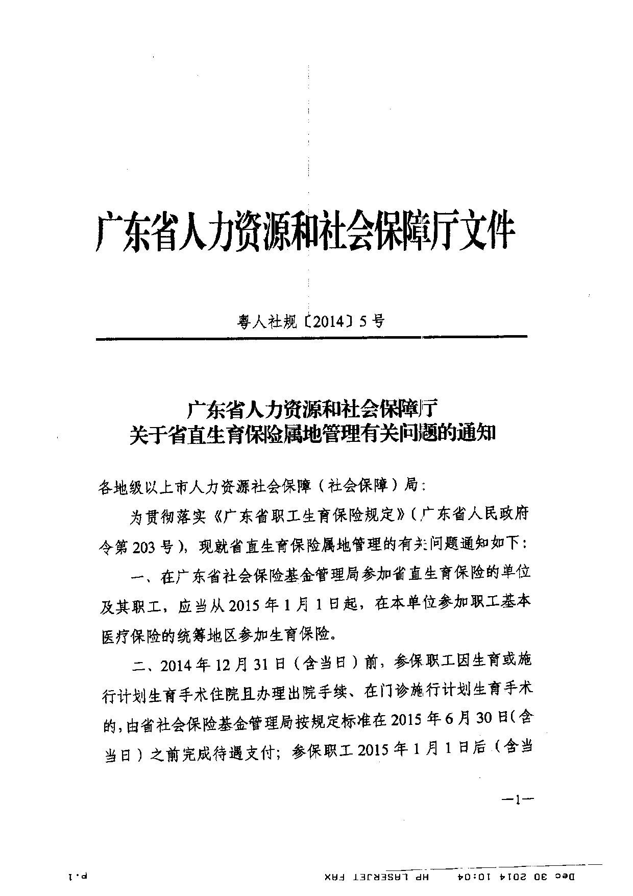 现将省人社厅《关于省直生育保险属地管理有关问题的通知》(粤人社规〔2014〕5号)转发给你们,请遵照执行。