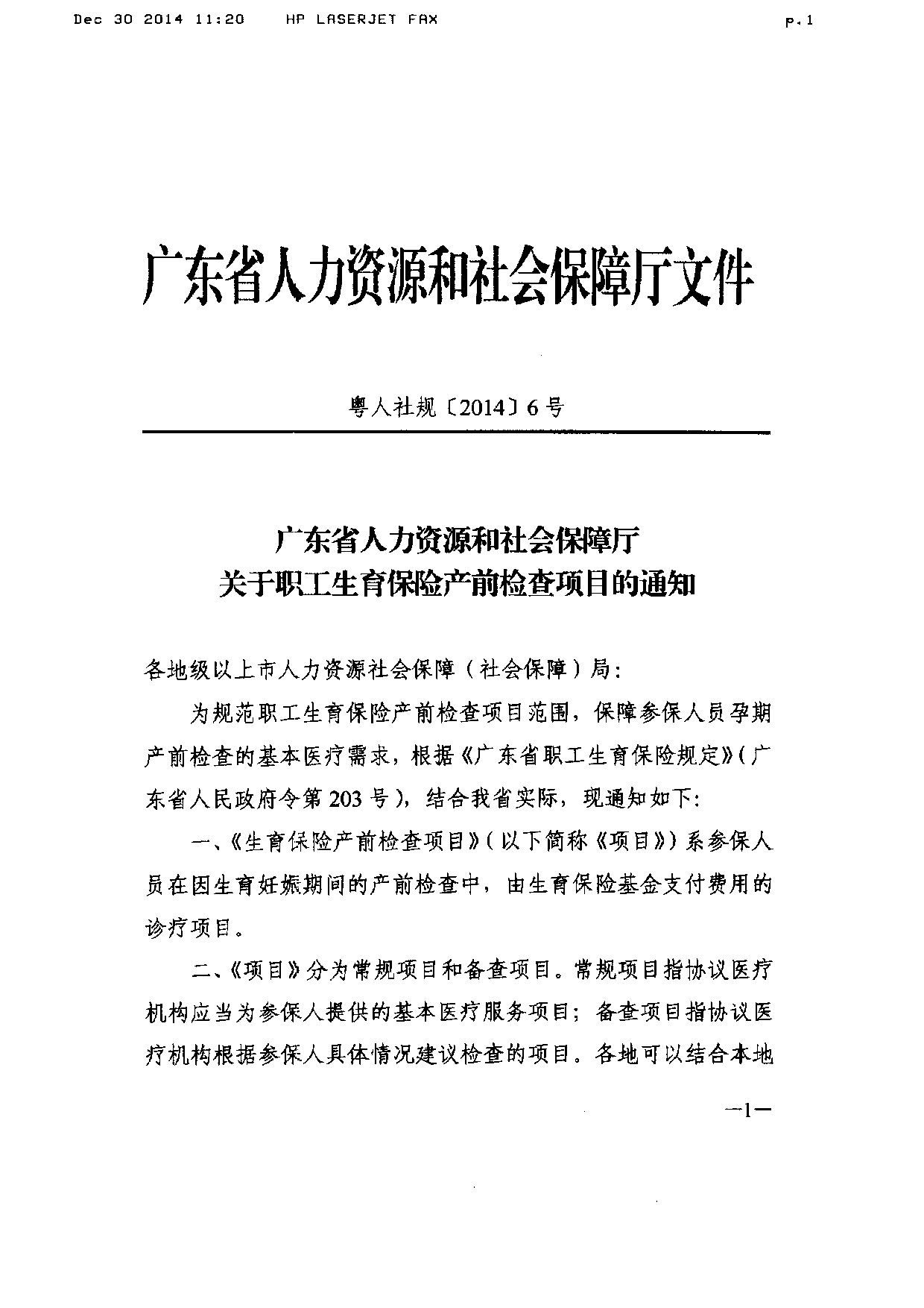 现将省人社厅《关于职工生育保险产前检查项目的通知》(粤人社规〔2014〕6号)转发给你们,请遵照执行。