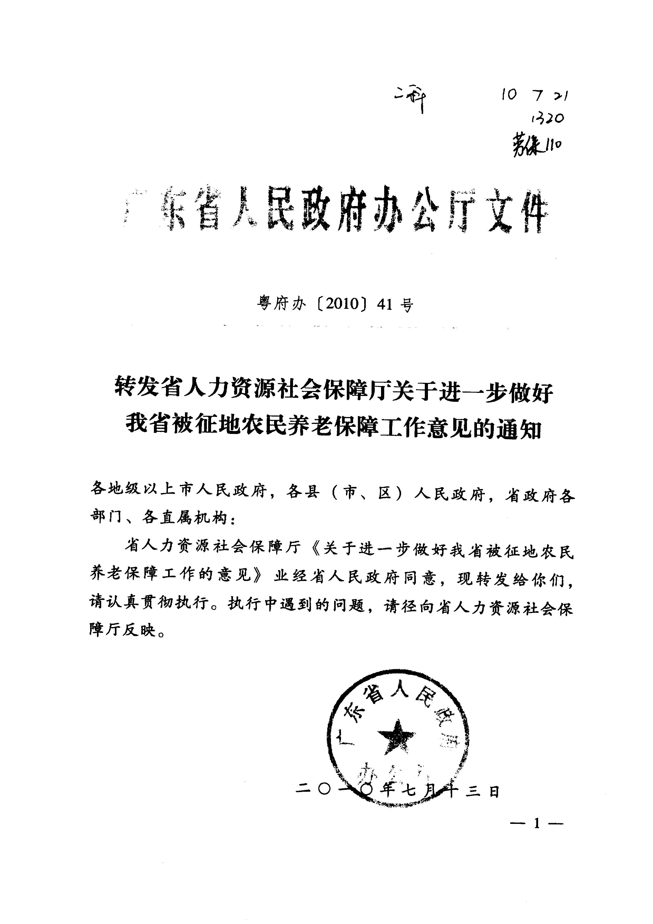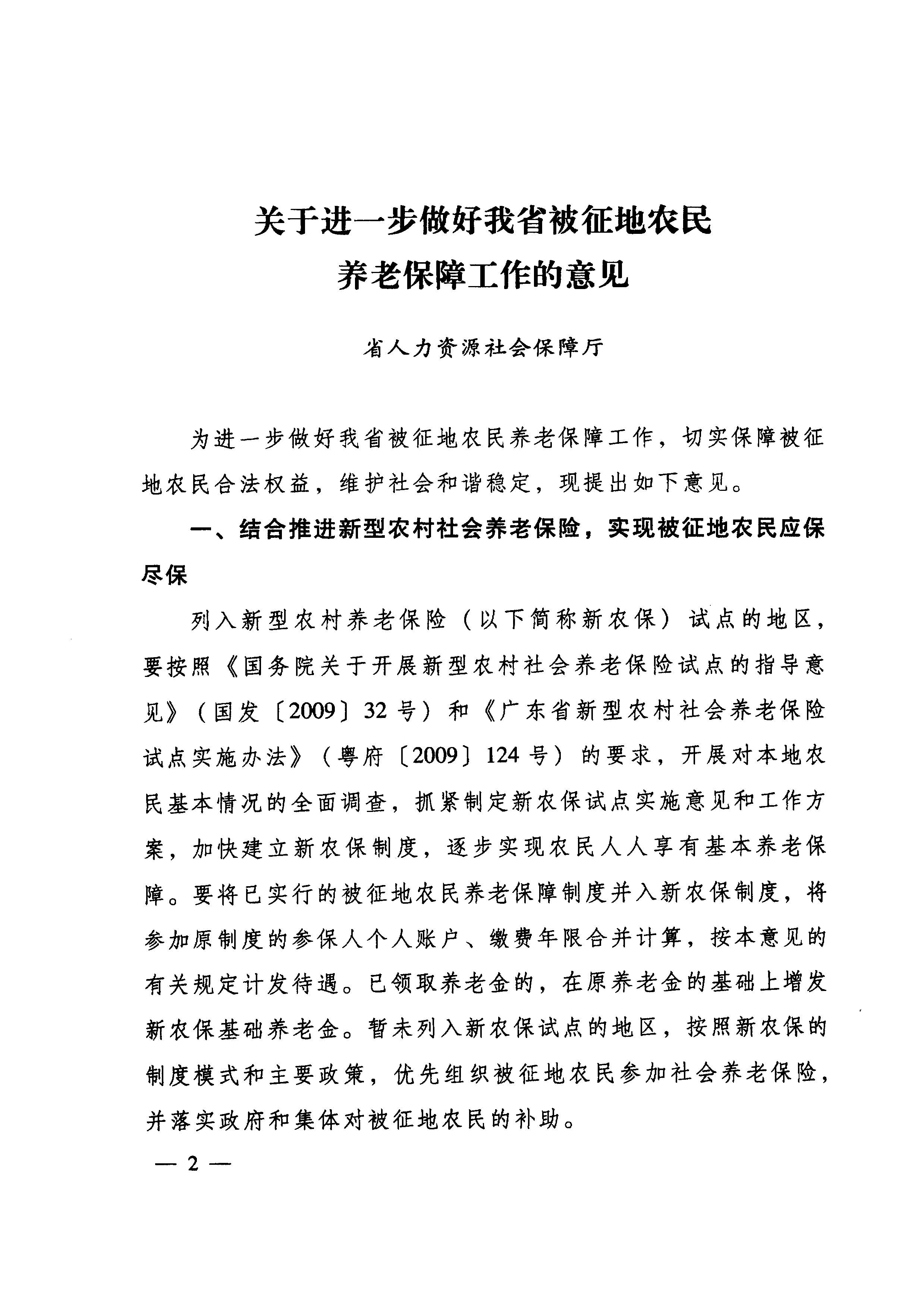 关于进一步做好我省被征地农民养老保障工作的意见_社会保险_江门市人力资源和社会保障局