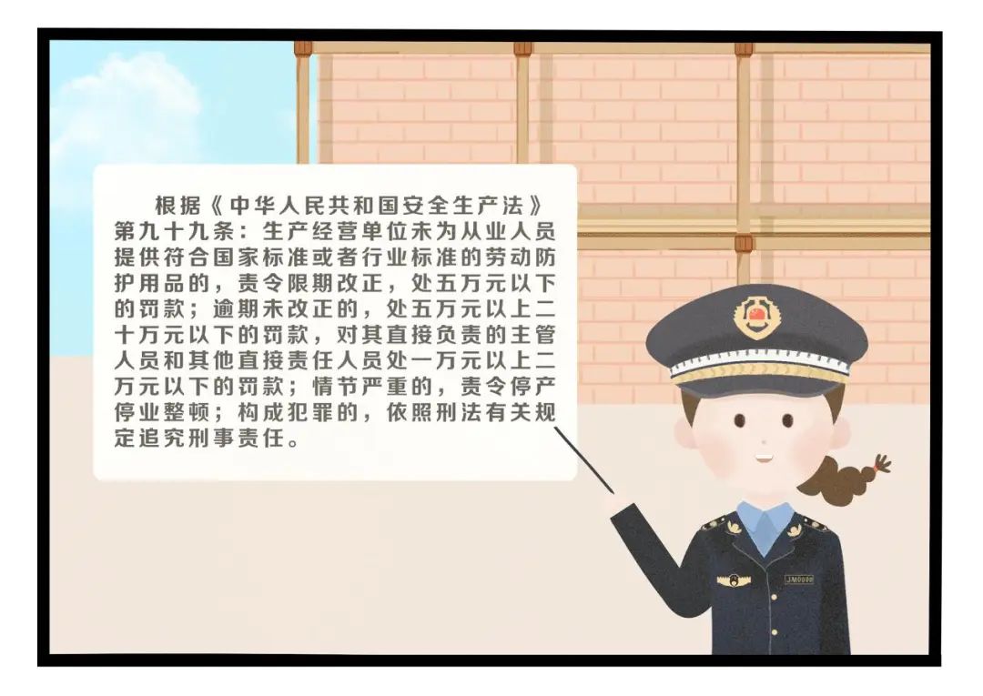 建筑工程施工作业现场环境复杂多变,由于部分从业人员未佩戴劳动防护用品、未采取安全防护措施、无证进行施工作业而引发的事故时有发生。归根到底是生产经营单位安全管理监控力度以及宣传教育不到位,使得从业人员安全意识薄弱。安全是一种责任,必须加强重视,若生产经营单位未为从业人员提供符合国家标准或者行业标准的劳动防护用品的,将要承担相应的法律责任。下面我们以通俗易懂的漫画形式以案说法: