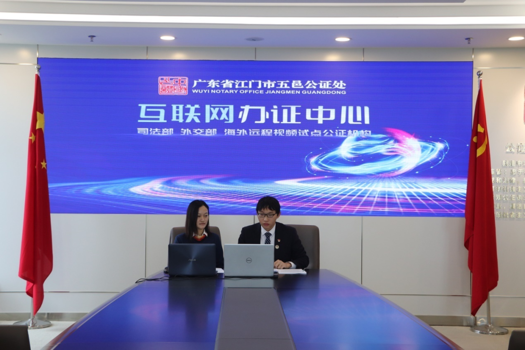 江门地区海外侨胞众多,涉外公证服务需求大,五邑公证处充分利用入选全国首批司法部、外交部海外远程视频公证试点机构名单优势,以线上方式,让华侨华人切实感受到来自祖国、来自家乡的法治关怀和温度。