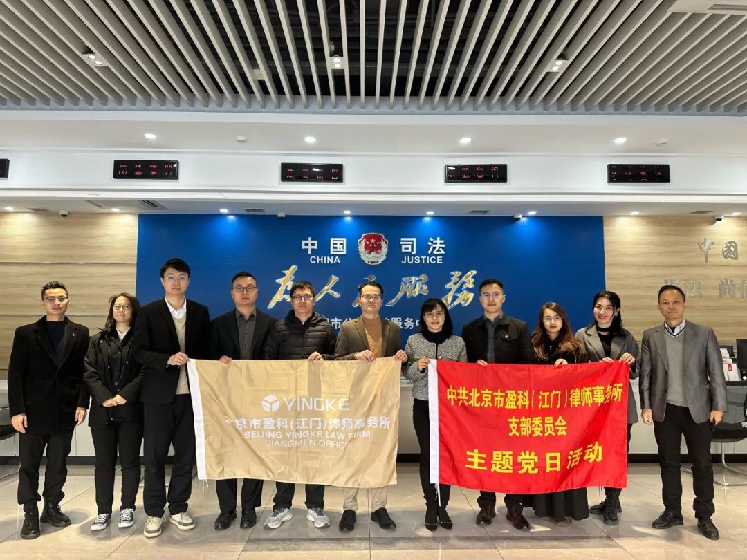 (图为北京市盈科(江门)律师事务所开展义务法律咨询活动人员合照)