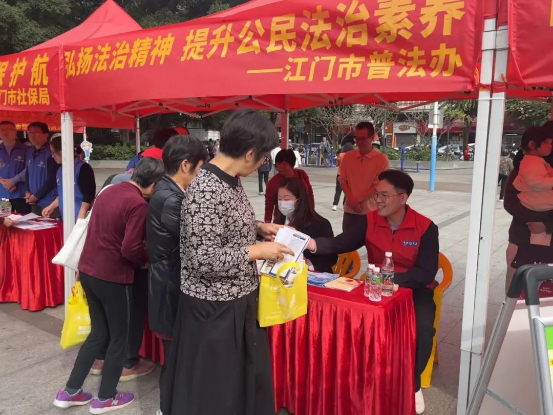 在第62个学雷锋纪念日来临之际,3月1日上午,由江门市委宣传部、市文明办主办,市司法局等多家单位协办的江门市2025年“学雷锋•文明实践我行动”主题活动在蓬江区育德文体广场举办。江门市普法办组织20名普法志愿者参加活动,以法治推动雷锋精神成为中国侨都新时代文明实践的鲜明底色。