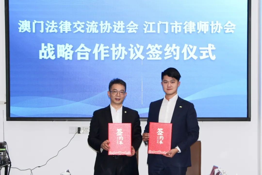 座谈会上,双方围绕规则衔接、人才交流、业务拓展、平台搭建等方面进行了深入探讨交流。会后,江门市律师协会与澳门法律交流协进会签署战略合作协议,双方将在学术交流、人才培养、组织互访、信息共享等领域开展深入合作。