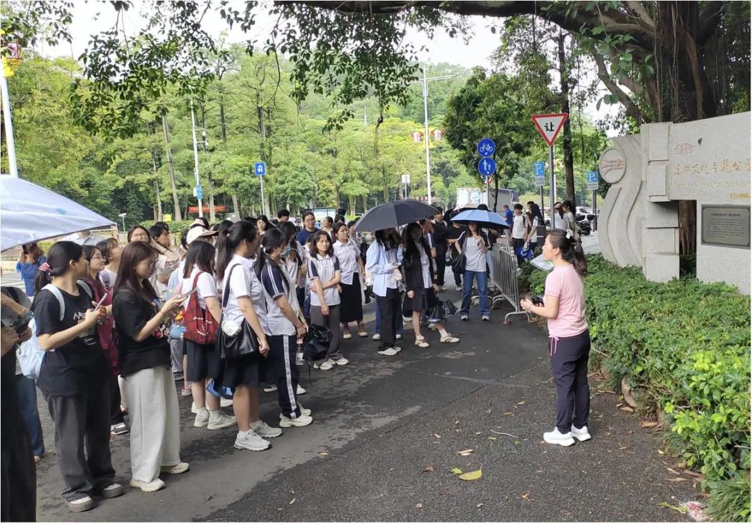 接下来,一行人来到首批省级法治文化主题公园、江门市首个法治主题公园——白水带法治文化主题公园。学生们沿着公园的主干道,从环山路到嬉水区,行走在公园的“法治常识线”上,走进一个个法治文化观赏区,学习法治历史、法治思想、法治常识等内容,用心感受法治文化主题公园“法融于景”的设计理念。