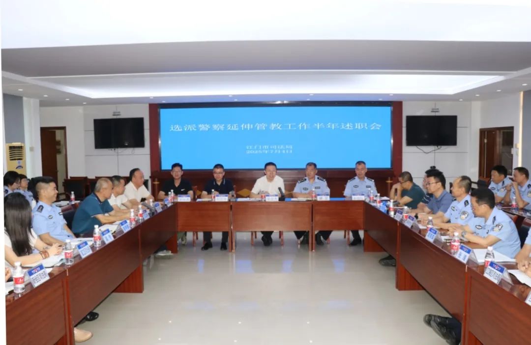 会议传达学习了市委、市政府领导关于选派警察延伸管教参与社区矫正工作的批示精神,全面总结了上半年延伸管教工作开展情况,听取了选派警察代表的述职汇报,并对下一步工作进行了具体部署。