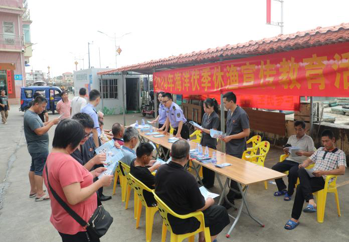 法官、检察官、边检站民警、渔业综合执法人员以及镇政府工作人员,都是休渔期的普法志愿者,他们进入停靠在渔港休养的渔船,开展“送法上渔船”活动。法官通过普法活动、法治项目等途径向渔民普及禁渔区、禁渔期、禁用工具及方法等法规,强调违法捕捞的法律后果;海警通过巡逻管控、悬挂横幅、案例讲解等方式加强政策宣传,明确告知渔民休渔时间、范围及处罚措施,引导渔民遵守规定;边检站民警结合日常执法执勤,走进船舶,采取发放宣传资料、条文解读、以案说法、有奖问答等形式进行宣传宣讲……