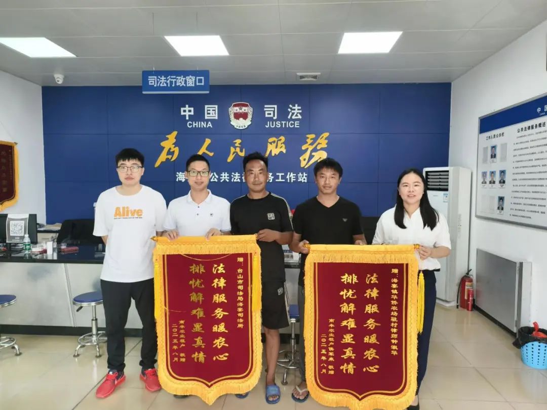 农户侯叔赠与钟淑华律师与海宴司法所锦旗
