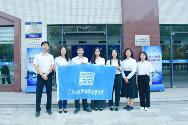 (图为广东弘新君睿律师事务所开展义务法律咨询活动人员合照)