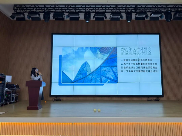 恩平市科工商务局、恩平市税务局、恩平海关等部门业务骨干结合自身职能,就最新外贸扶持政策和广交会参展申请、出口退税流程优化与实务操作、进出口货物收发人备案政策等进行了详尽解读和操作指引,通过精准政策辅导,提升企业外贸实务技能