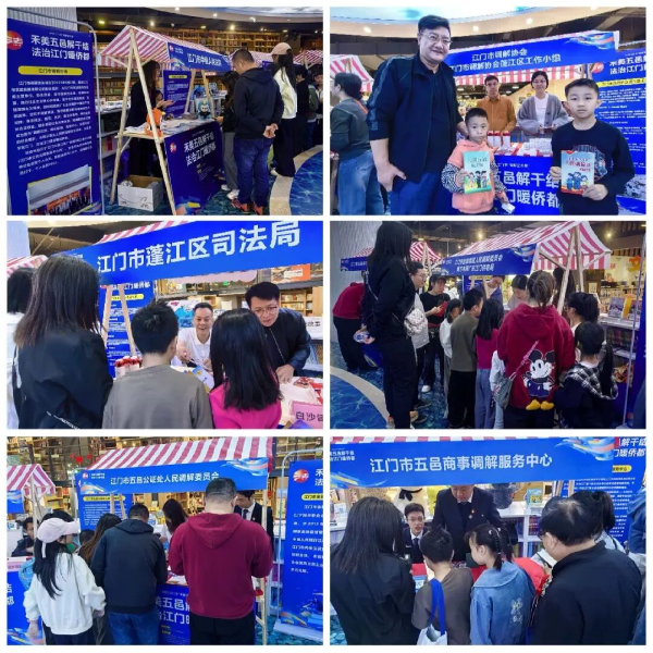 本次“调解宣传周”构建“市级统筹、县区联动、全域覆盖”工作格局,各地聚焦宣传核心,打造特色品牌。蓬江区在江门市购书中心设置三大功能板块,集中展示“禾美蓬江”调解成果,环市街道“咖啡调解书屋”、杜阮镇“凉瓜调解”、潮连街道祠堂调解等本土品牌集中亮相,发放宣传资料600余份,解答咨询20余人次。恩平市整合多方力量,吸纳1883名“一长+ 一员”义务调解员,构建“市-镇-村”三级宣传网络,开展“靶向宣传”,3场专场活动详解《中华人民共和国人民调解法》,累计发放资料3000份,回应热点问题70余条,化解纠纷6起。