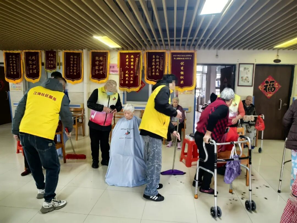 江海区司法局依托与区福利院共建的“爱心联盟”机制,常态化组织社区矫正对象以志愿者身份参与公益服务。在福利院内,他们精心制作蕴含吉祥寓意的江门非遗“生恭鲤鱼”,将作品与祝福一同送给老人。在非遗拓印活动中,他们耐心协助、亲切陪伴,在与老人的协作交流中,既传承了文化,也聆听了人生故事。此外,环境卫生整理、爱心义剪等服务让福利院内暖意融融。“看到老人们脸上的笑容,我真切意识到自己依然能创造价值、被社会需要。”一位社区矫正对象的真情流露。系列活动不仅丰富了养老服务供给,更让社区矫正对象在奉献中培育公德意识、涵养向善之心,实现“社矫教育提质”与“养老服务增效”的双向共赢。