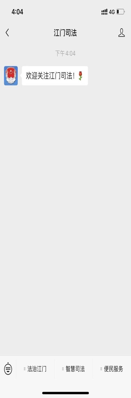 1.申请人可关注“江门司法”微信公众号,点击底部“智慧司法”模块选择“智慧司法”后,在“法律服务”栏中选择“行政复议”。