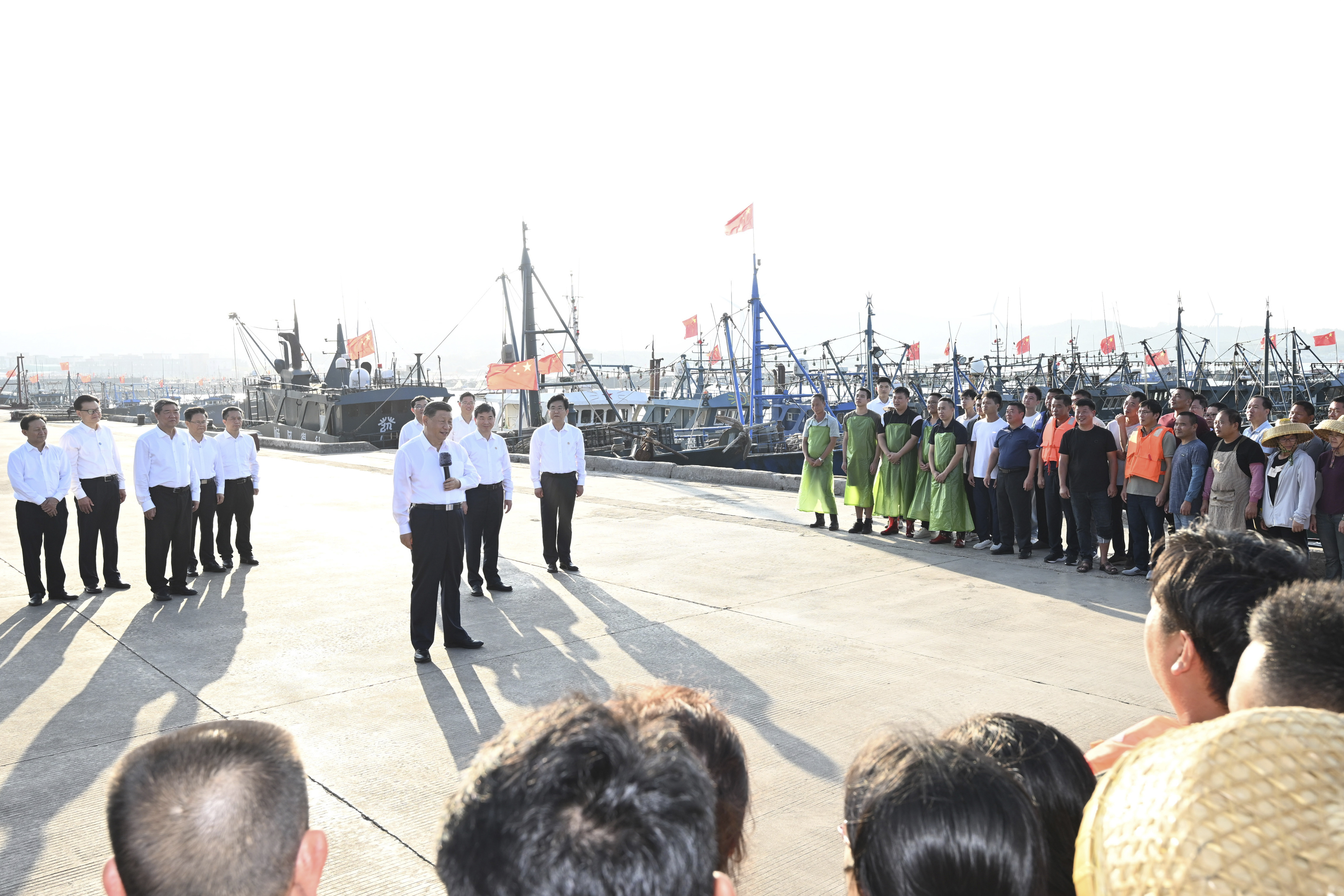 10月15日至16日,中共中央总书记、国家主席、中央军委主席习近平在福建考察。这是15日下午,习近平在漳州市东山县陈城镇澳角村考察时,同渔民们亲切交流。新华社记者 谢环驰 摄