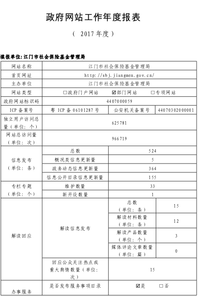 政府网站工作年度报表(江门市社会保险基金管理局)