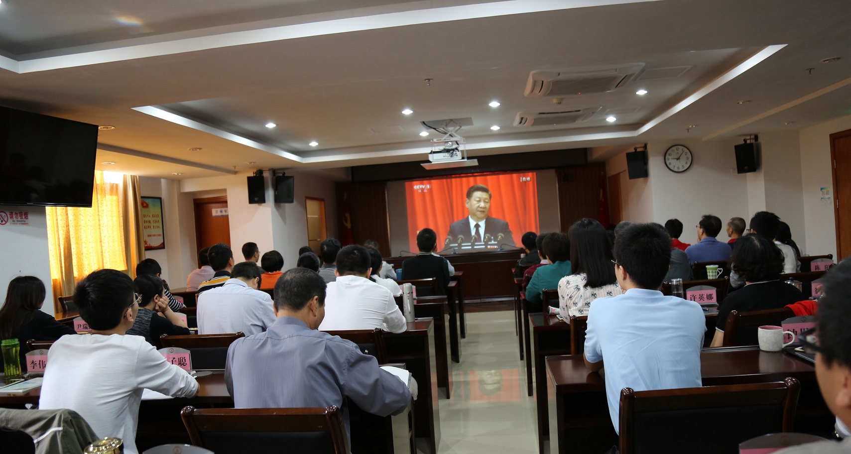 10月18日上午9:00,举世瞩目的中国共产党第十九次全国代表大会开幕。江门市审计局组织了全市审计机关干部职工在各会场收听收看会况直播,共同见证党的十九大召开这一伟大历史时刻,第一时间了解大会内容,学习十九大精神。