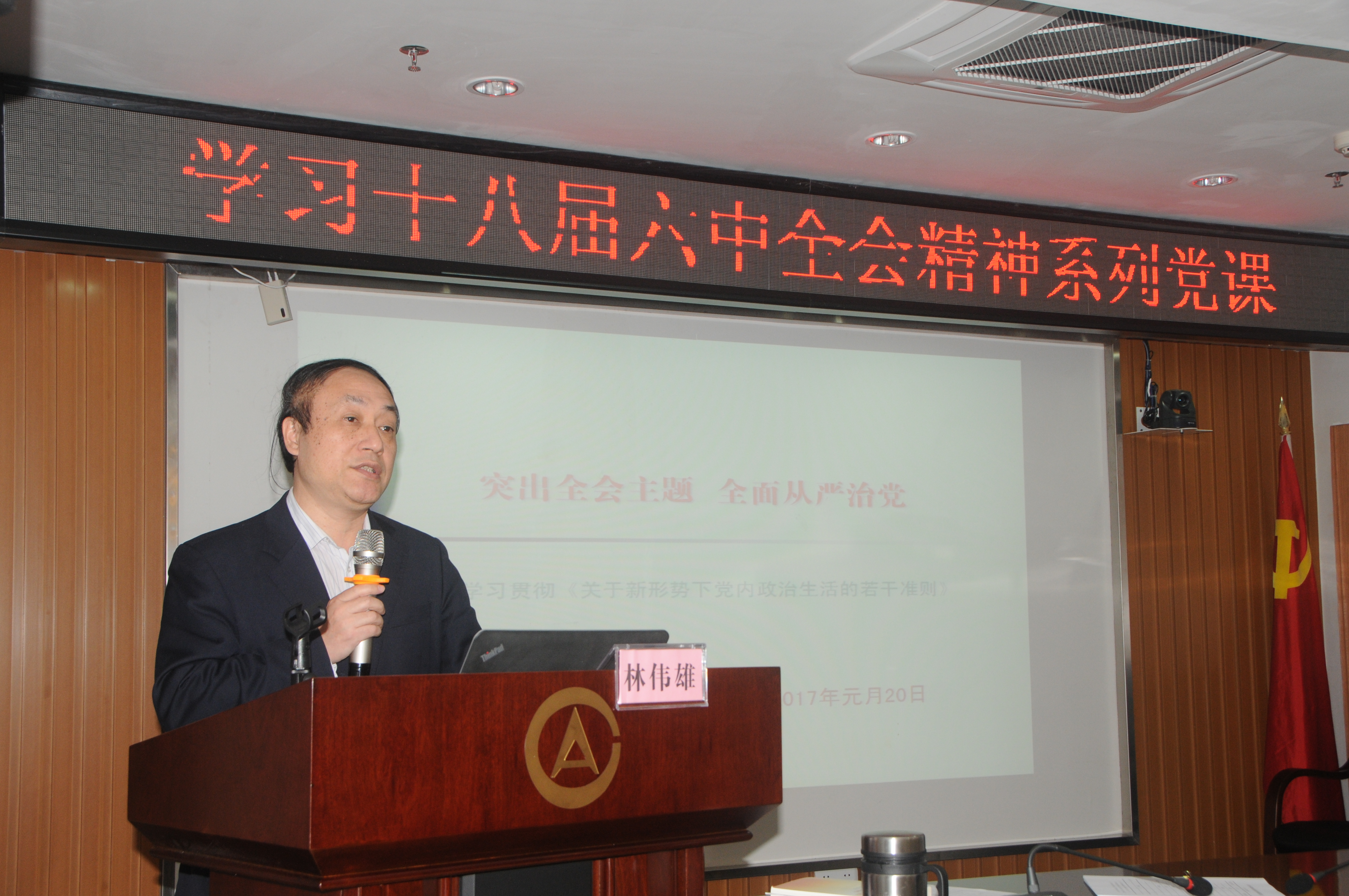 他强调,全体党员干部必须增强党的意识,时刻牢记自己第一身份是党员,第一职责是为党工作;要做到在党爱党、在党言党、在党忧党、在党为党;要明确全面从严治党新要求,承担起全面从严治党新使命;共同任务,一齐动手;一分部署,九分落实,抓铁有痕,踏石留印;尤其是党员领导干部要以上率下,率先垂范,落实全面从严治党政治责任;要有韧劲,党的建设新长征永远在路上。