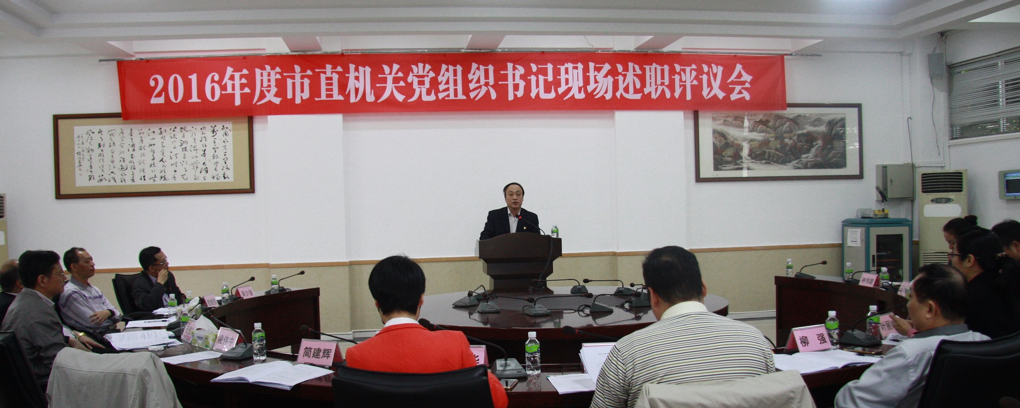 2016年度江门市直机关党组织书记现场述职评议会于2017年1月10日在江门市委党校召开。会议上,各位书记对2016年度工作进行现场述职并接受在场各位书记和本单位代表评议。江门市审计局党支部书记林伟雄同志进行了述职,我局六位党员和群众代表参与了评议。