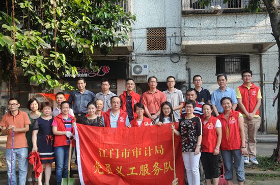 市审计局党支部积极响应江门市“让爱到家——万名党员进社区”活动的号召,组织党员义工和入党积极分子于7月9日上午到结对共建的蓬江区丰乐社区同步开展“清洁美家园”志愿服务集中行动。