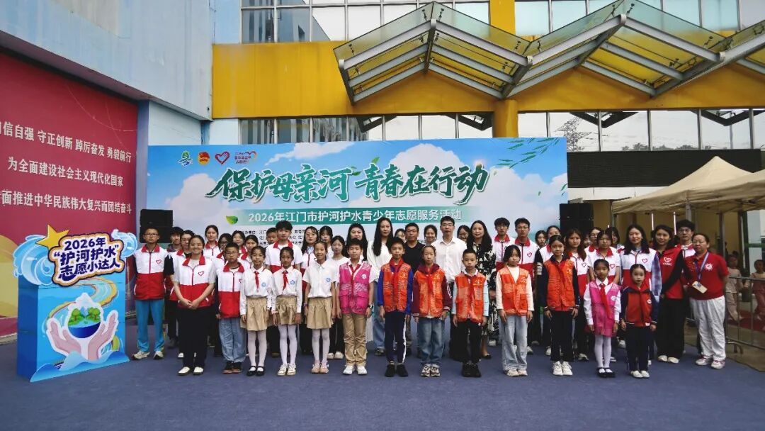 3月21日,在第34届“世界水日”、第39届“中国水周”来临之际,由团市委、市河长办主办,江门市青年志愿者协会、江门市青少年宫承办的“保护母亲河 青春在行动”2026年江门市护河护水青少年志愿服务活动在江门市青少年宫广场举行。来自我市有关高校、中小学、青年志愿服务组织的护河护水志愿者代表、亲子义工家庭齐聚一堂,以青春之约赴护水之行,共同为侨乡河湖生态保护注入青春动能。