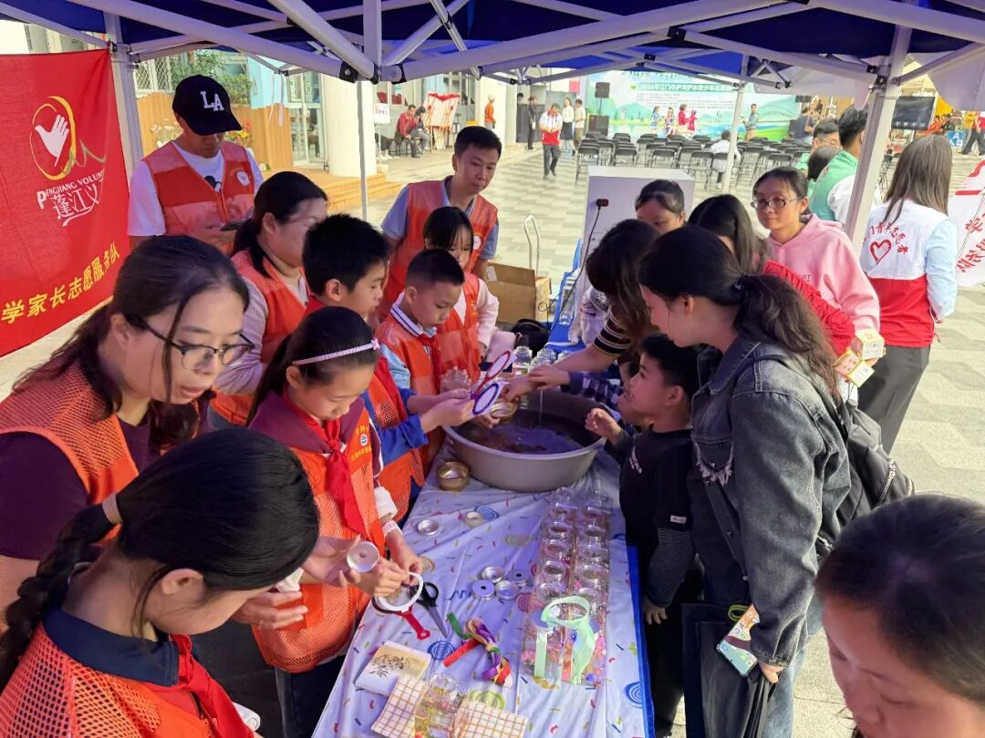 仪式落幕,精彩继续。现场20个护河护水展示摊位即刻开启,热闹的氛围迅速蔓延,现场吸引青少年、社会群众参与超过1000人次。护河护水知识展示区的展板前,青少年们驻足学习,了解治水护水知识;护河护水集市里,水质检测体验、水过滤体验让孩子们亲手感受护水的乐趣,漆扇绘画、水滴主题环保手工坊里,亲子家庭携手创作,将环保理念融入手工制作,护水知识问答、江门碧道拼图等趣味游戏前,孩子们踊跃参与、积极抢答,在欢声笑语中学习护水知识;共绘护河护水主题涂鸦画区域,大家手持画笔,共同勾勒出碧水蓝天、水清岸绿的美好图景,用色彩传递护水初心。