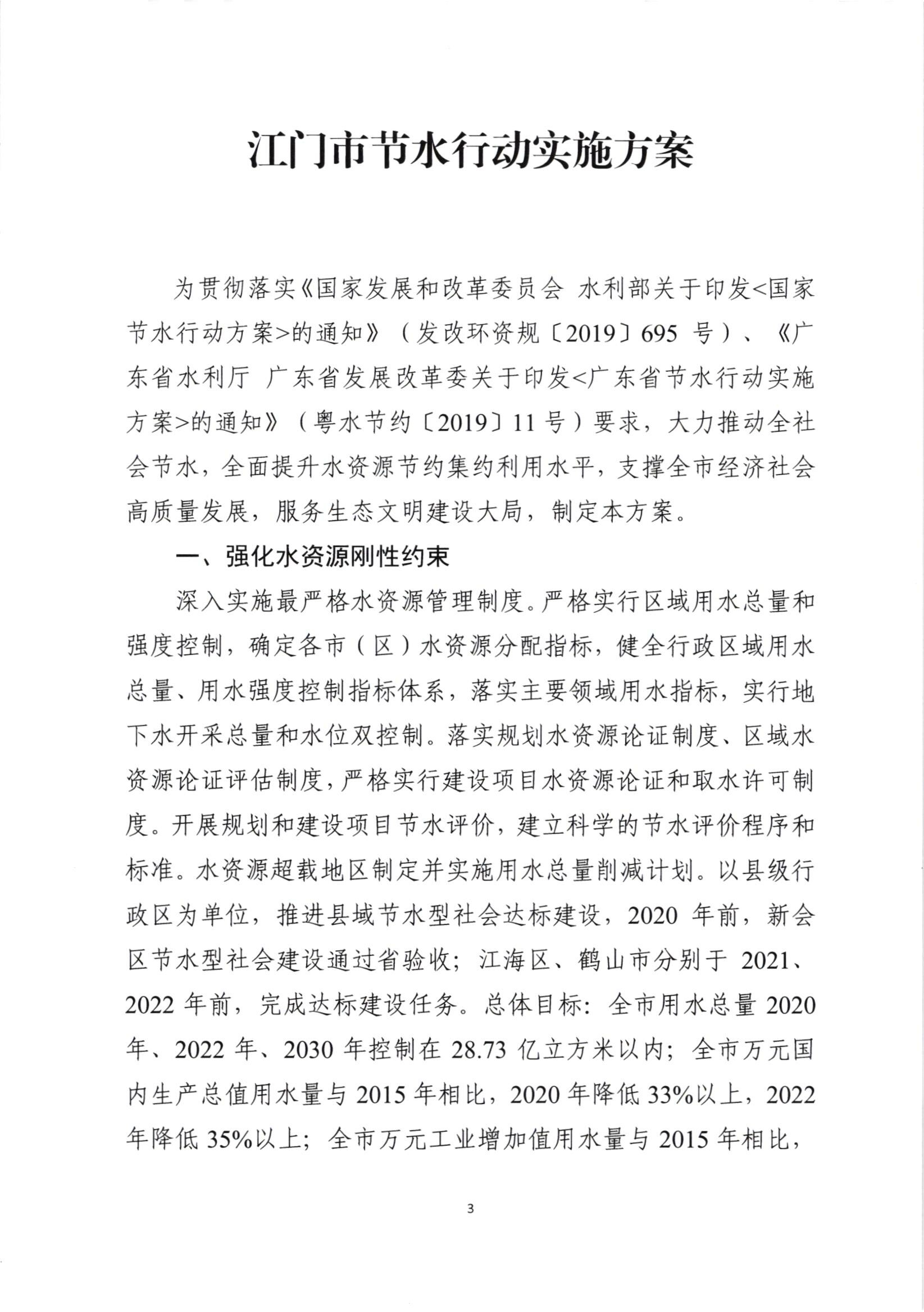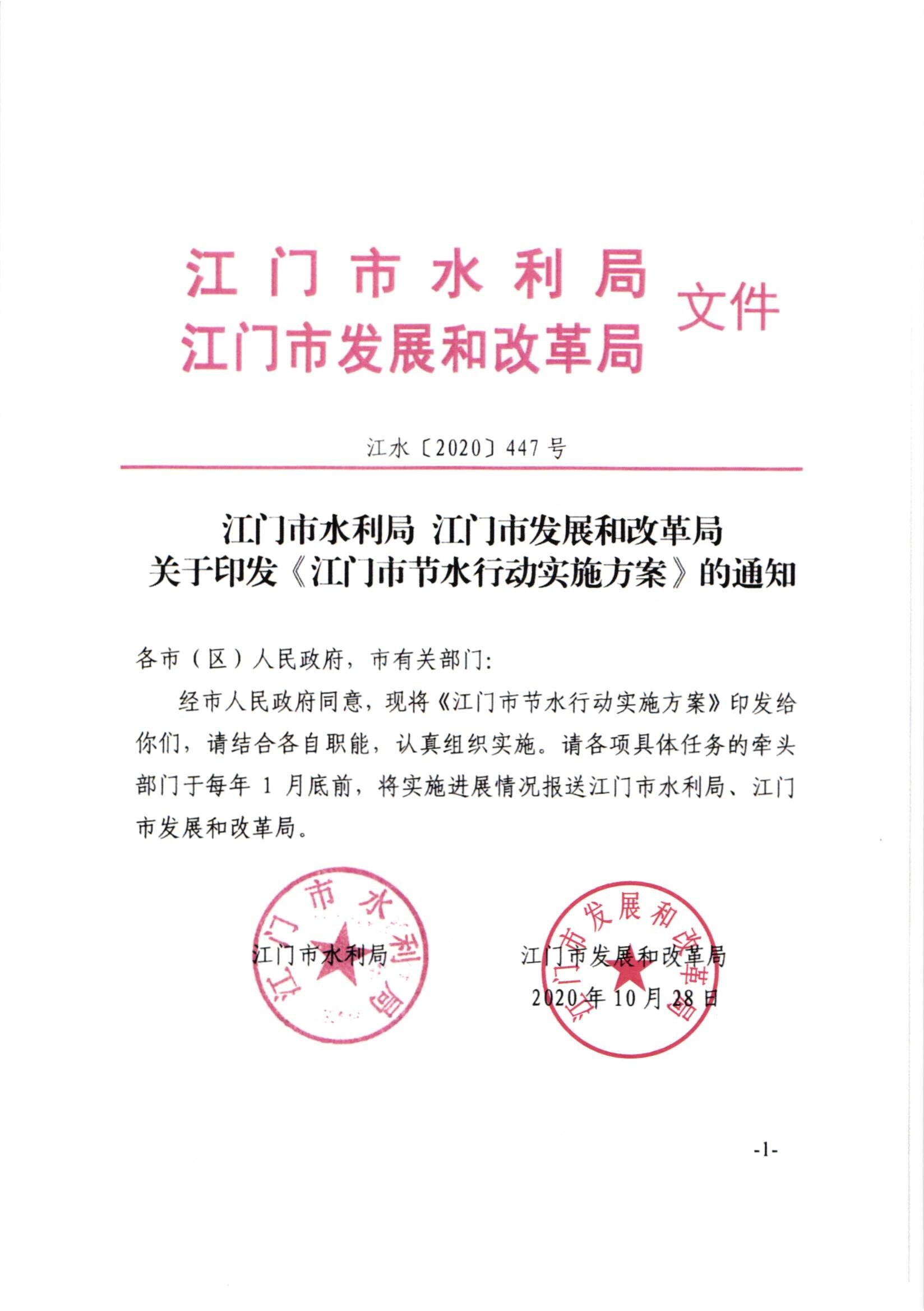 江门市水利局 江门市发展和改革局 关于印发《江门市节水行动实施方案》的通知_公示通告_江门市水利局