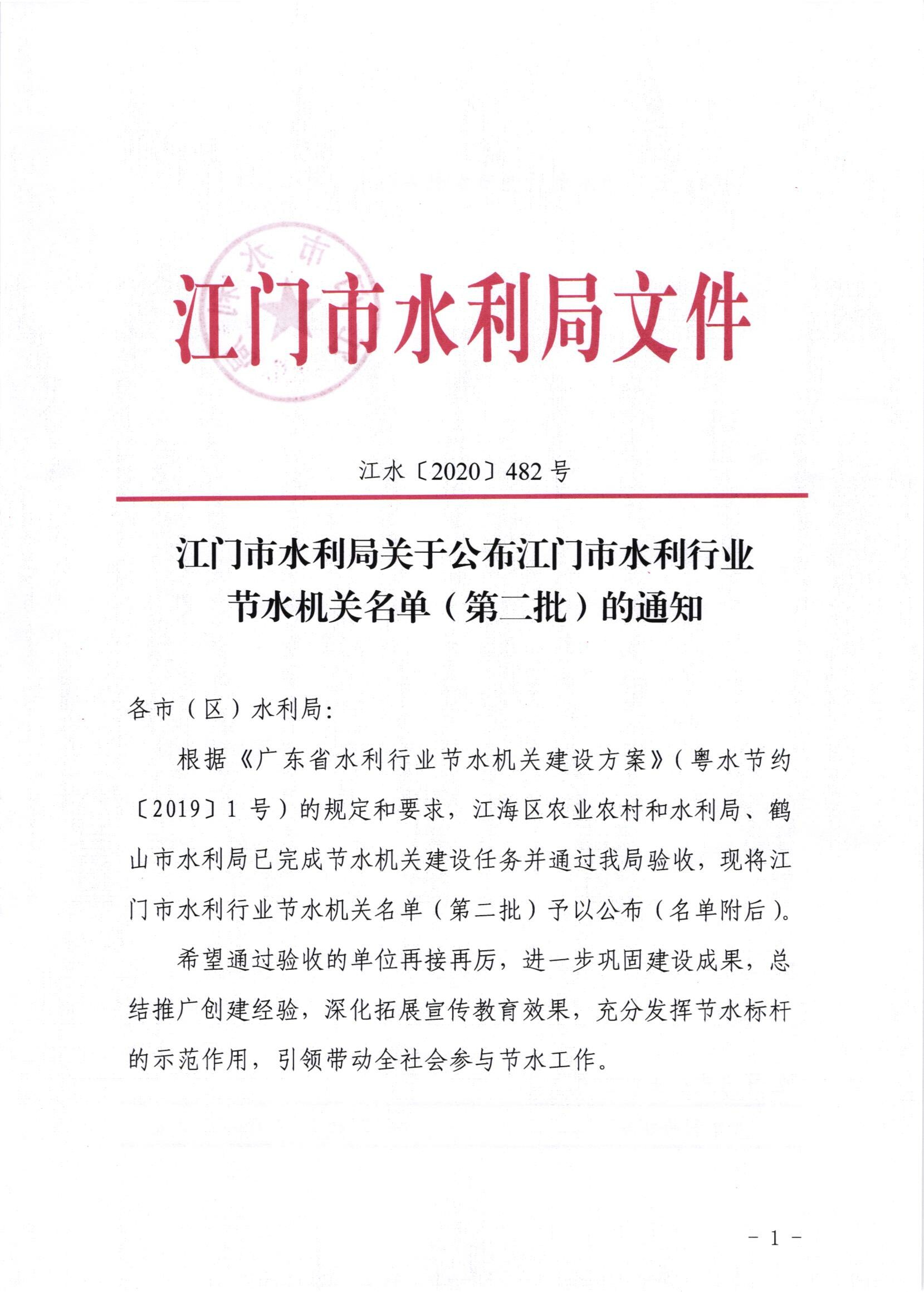 江门水利局关于公布江门市水利行业节水机关名单(第二批)的通知_公示通告_江门市水利局