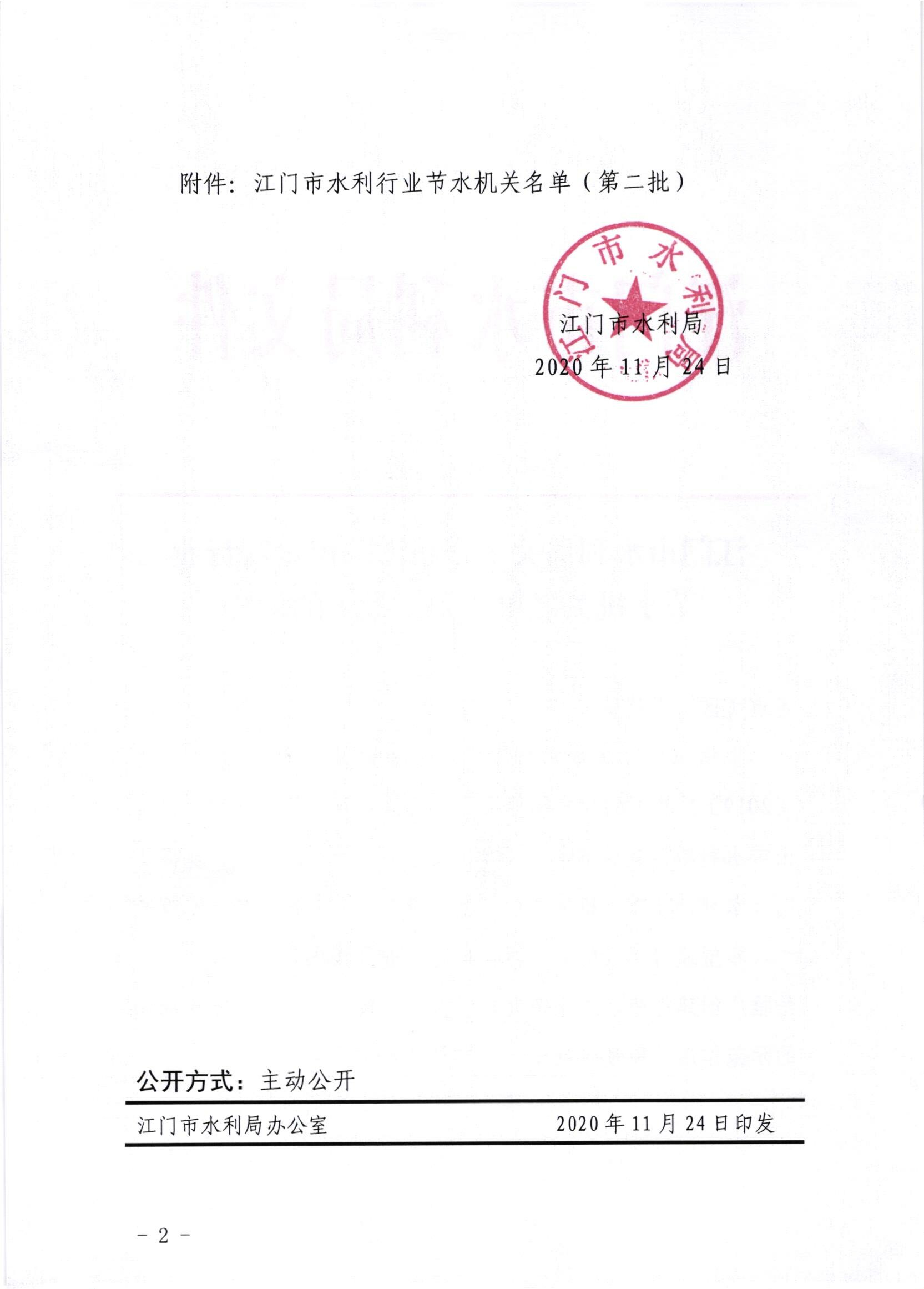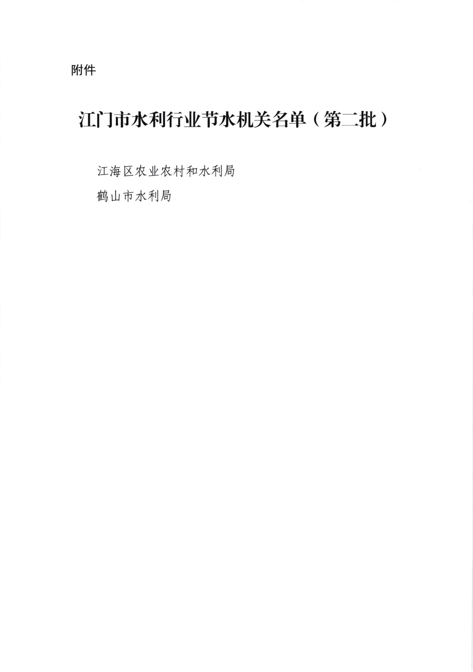 江门水利局关于公布江门市水利行业节水机关名单(第二批)的通知