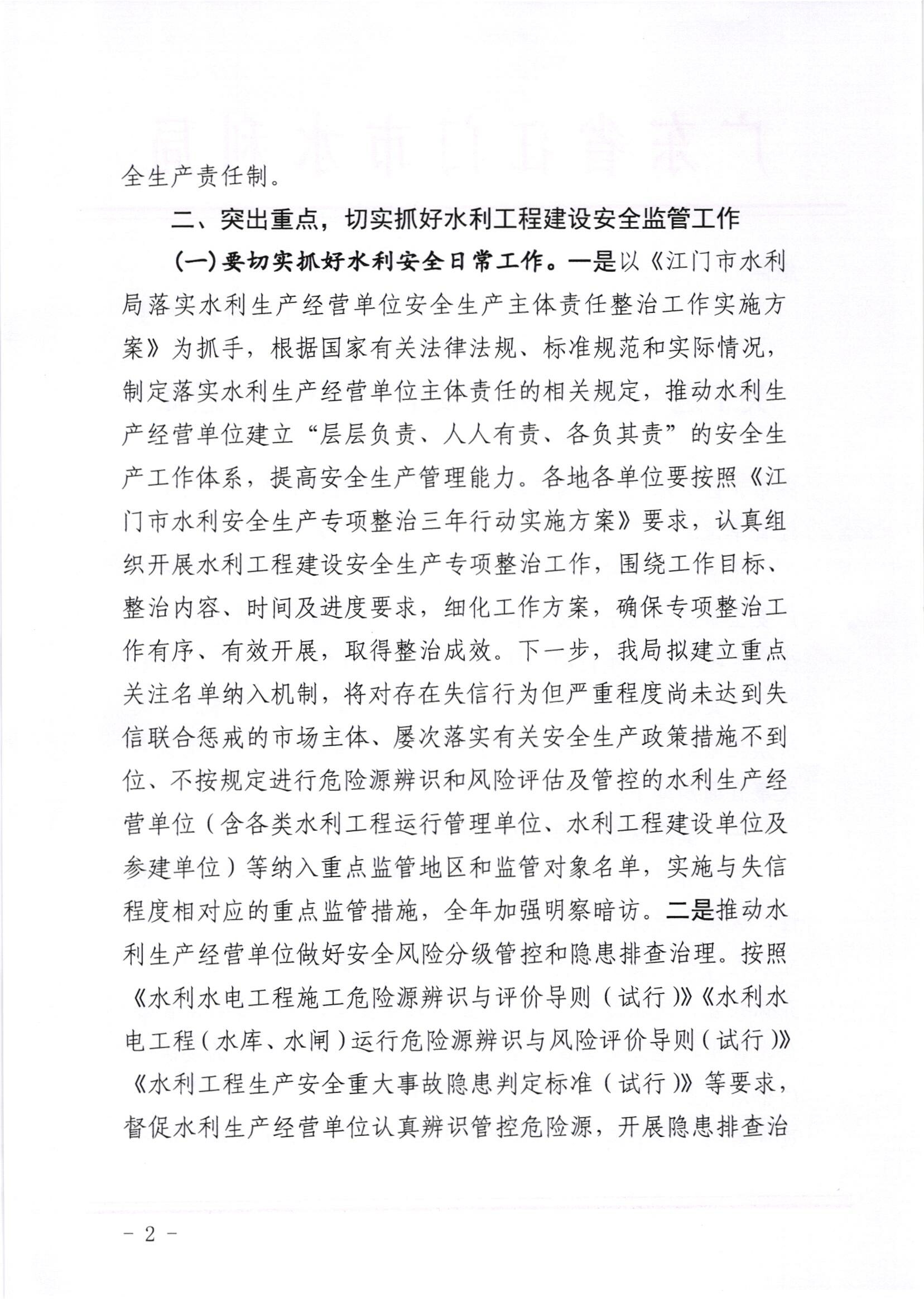 关于进一步做好水利安全生产工作的通知_公示通告_江门市水利局