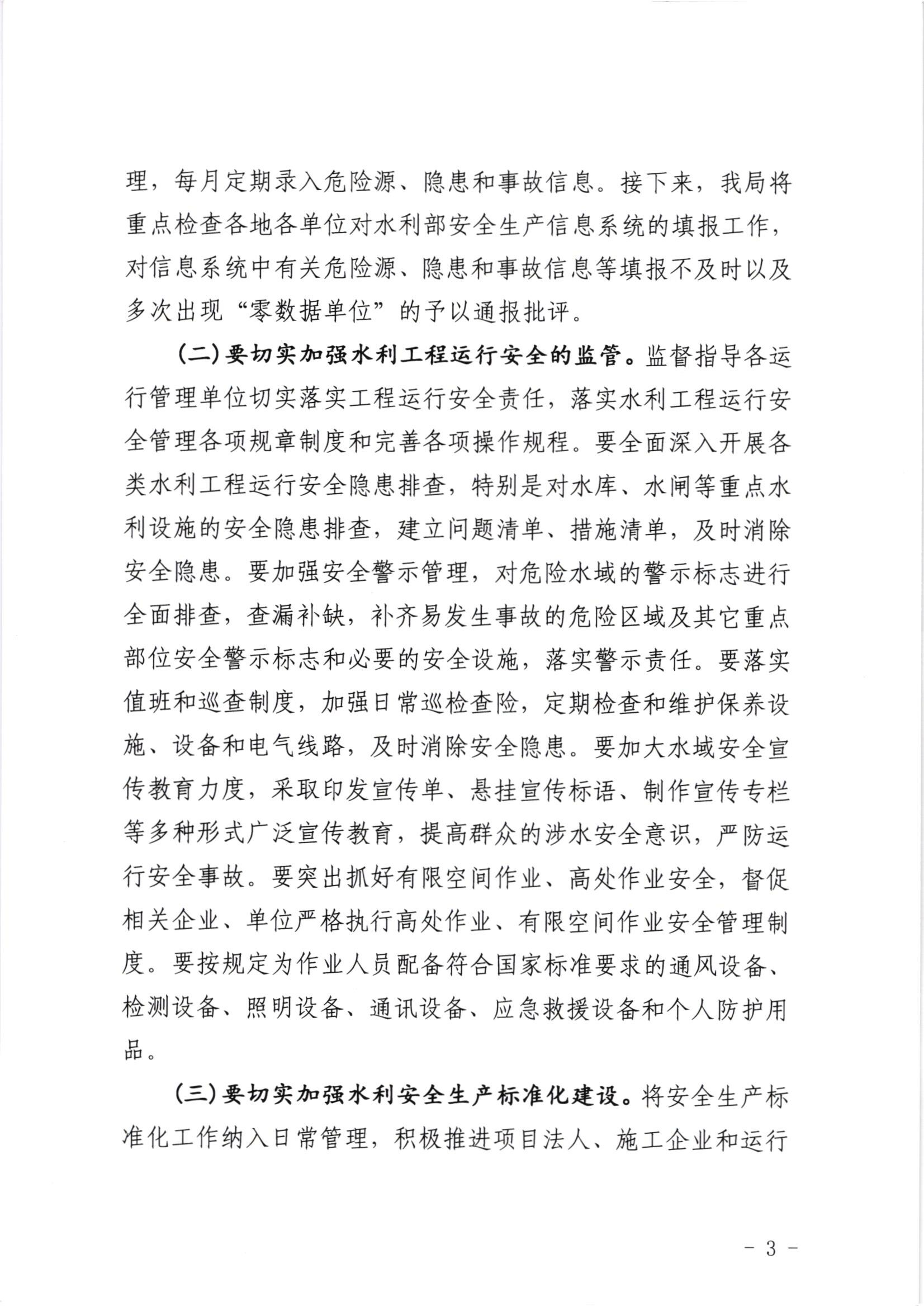 关于进一步做好水利安全生产工作的通知